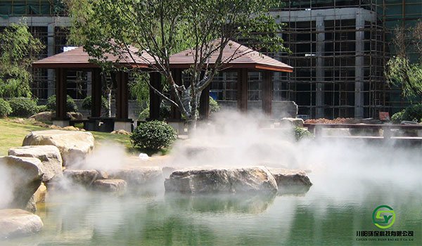 景观造雾、利用高压喷雾技术,制造出大量的水分子,人造雾产生大量负离子,美化环境,体验回归自然的心旷神怡